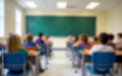 © hao, Obraz premium Blurred background of an empty classroom, signifying back-to-school season. High quality