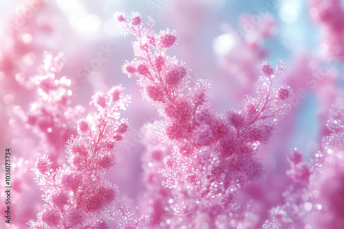 © Neon_Drop, Naklejka premium Blurred background of beautiful light blue and purple plant.