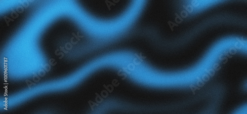 © Олег Мальшаков, Obraz premium Blurred background of black blue waves with grainy texture