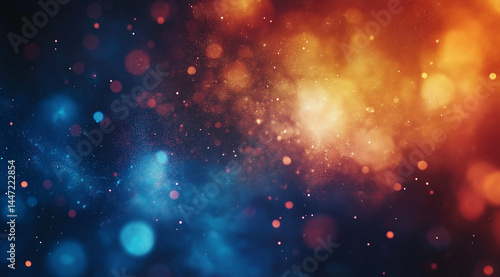 Obraz premium Blurred background with blue, orange, and red bokeh lights