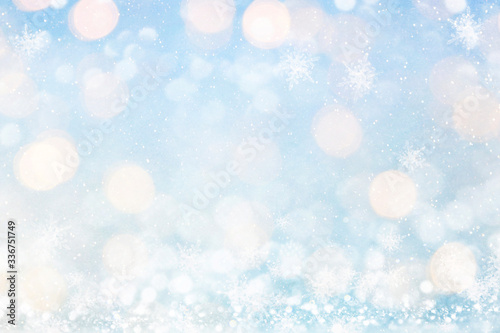 Fototapeta premium Blurred background with bokeh. Christmas and Happy New Year greeting card.