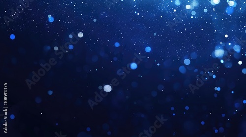 © CreativeBro, Obraz premium Blurred blue bokeh lights shimmering against a dark backdrop, creating a festive atmosphere with spacious areas for text and graphic overlays.