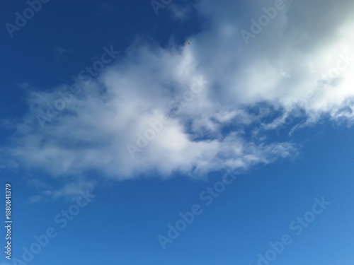 Fototapeta premium Blurred blue sky bokeh background with soft white and gray clouds, dreamy...