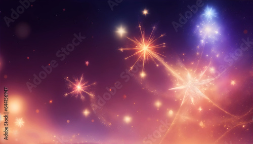Fototapeta premium Blurred christmas background with sparkles, stars, fireworks, cosmic...