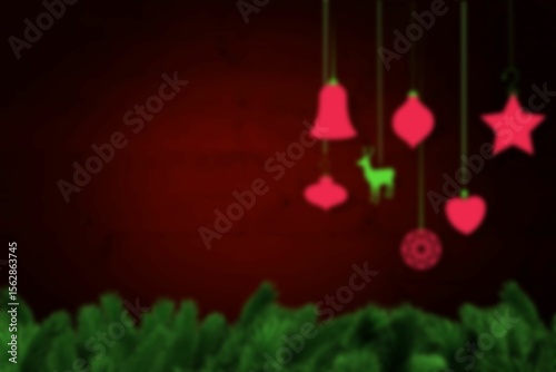 Fototapeta premium Blurred christmas decorations hanging over wood