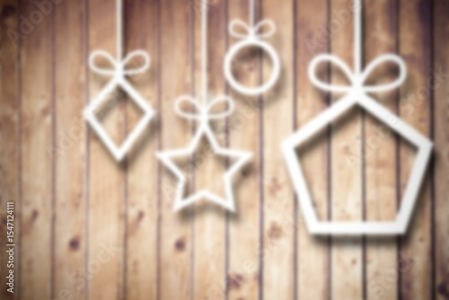 © vectorfusionart, Obraz premium Blurred christmas decorations on wood