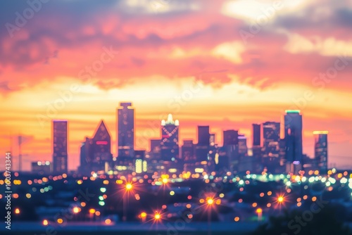 © AssanAI.Studio, Fototapeta premium Blurred City Skyline at Sunset with Clear Foreground