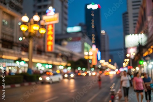 © nilawan, Fototapeta premium Blurred city street with vibrant nightlife and traffic