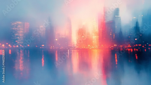 © lartestudio, Fototapeta premium Blurred cityscape reflection in soft colors.