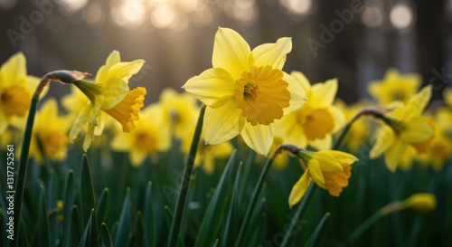 © Burak, Fototapeta premium Blurred Daffodils in Breeze