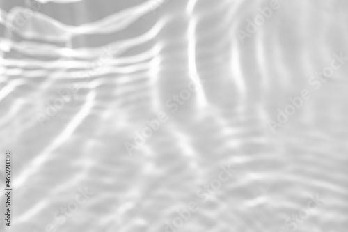 © Aleksandra Konoplya, Obraz premium Blurred defocused water texture overlay effect for photo and mockups. Organic drop diagonal shadow and light caustic effect on a white wall. Shadows for natural light effects