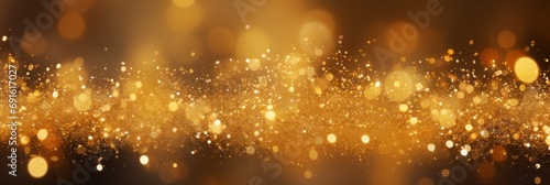 © pundapanda, Naklejka premium Blurred gold background with confetti and sparkles, bright colorful background, banner