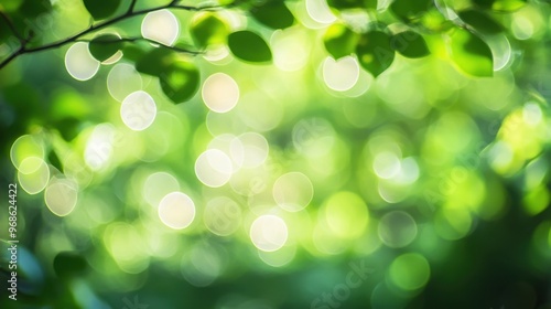 © MakoPoko, Obraz premium Blurred green bokeh background with soft, out-of-focus circular light patterns, evoking a natural, peaceful environment.