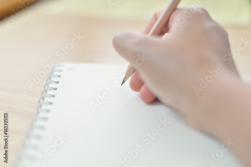 Obraz premium Blurred hand writing on notebook.