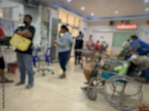 © Duangjit, Fototapeta premium Blurred image of patient, wheelchair, in hospital, waiting to see doctor.