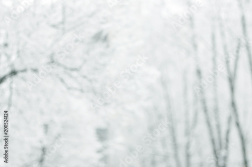 © yurolaitsalbert, Fototapeta premium blurred image of trees in winter Park