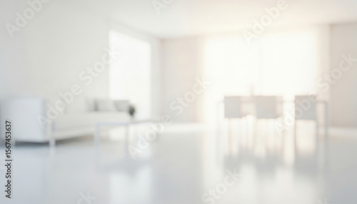 Fototapeta premium Blurred interior view of a bright modern room with furniture and sunlight., perfect for use in tech branding, modern web hero images, or app UI backgrounds