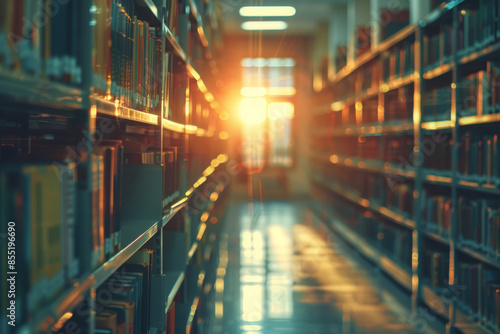 © M.Gierczyk, Obraz premium Blurred Library Background with Books