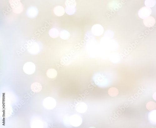 © nys, Obraz premium Blurred lights bokeh on soft beige background.
