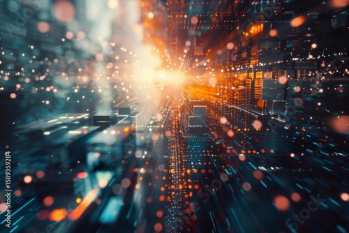 Fototapeta premium Blurred lights creating an abstract futuristic server room accelerating...