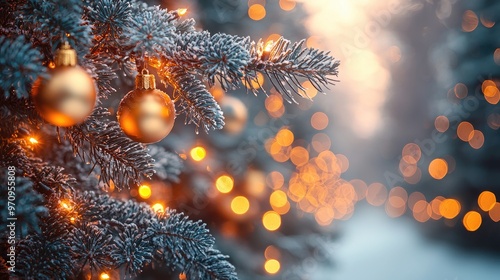 Fototapeta premium Blurred lights shining amongst tree branches in the background