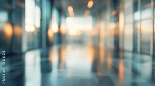 Fototapeta premium Blurred Modern Office Interior with Panoramic Windows and Soft Lighting