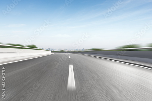 © zhu difeng, Naklejka premium blurred motion highway through country side