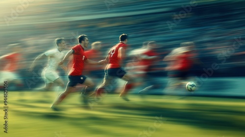 © Penatic Studio, Fototapeta premium Blurred Motion of Soccer Players Running on a Field