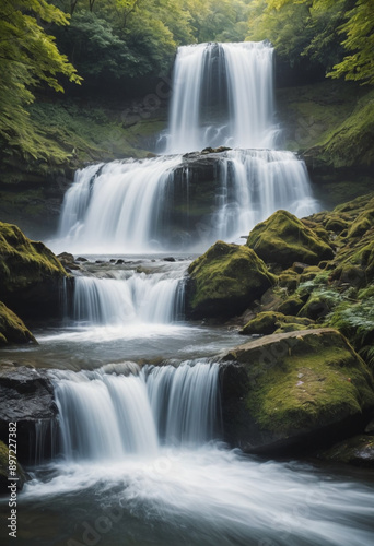Obraz premium Blurred motion photo of a waterfall, capturing the power and movement of the...