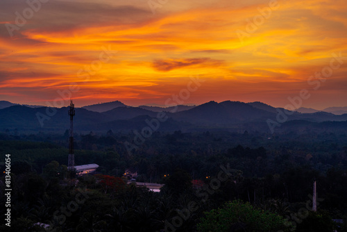 Fototapeta premium Blurred nature background of sky lights Evening with colorful lights A bright twilight of pinks and oranges, with a cool breeze blowing through.