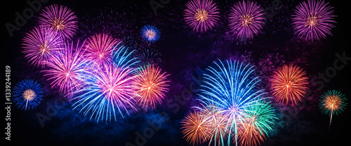 Naklejka premium blurred new year fireworks shape Abstract background of colorful neon lights...