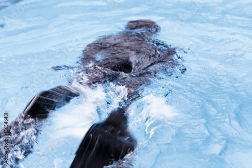 © Thermchai, Obraz premium Blurred of Free diving training on swimming pool