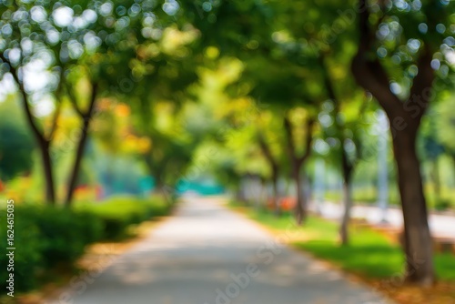 Naklejka premium Blurred park path with trees