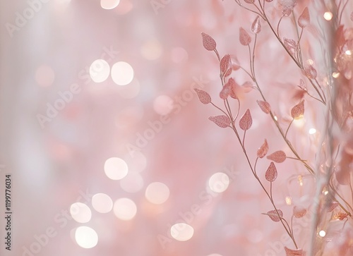 Fototapeta premium Blurred pastel pink background with bokeh lights, light and airy feel, pastel colors, minimalistic, soft lighting, for a wedding card.