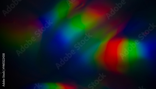 © Ton Photographer4289, Obraz premium Blurred refraction light texture overlay effect. Dark Holographic rainbow background.