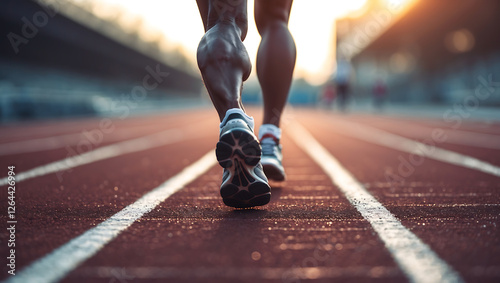 © Waris, Fototapeta premium Blurred Running Track with Soft Lighting Creating a Dreamy Motion Effect for Sports and Fitness Themes