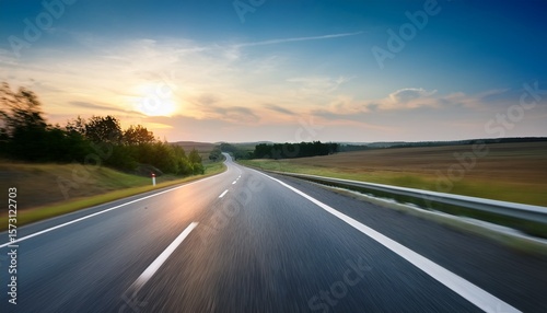© Tom, Naklejka premium blurred rural highway seen from moving car at dusk