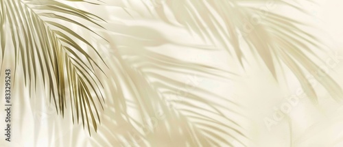 Fototapeta premium Blurred shadow from palm leaves on light cream wall