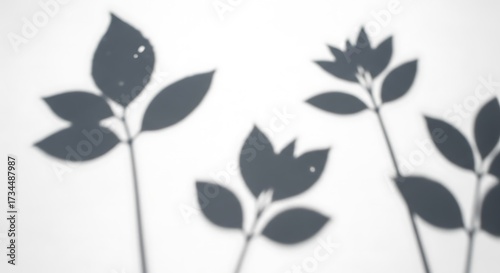 © Handz Boy, Obraz premium Blurred shadows of floral stems and leaves on a white surface