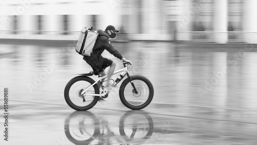 Obraz premium Blurred silhouette of a cyclist on a city street