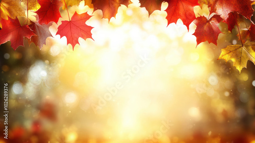 © M.Gierczyk, Naklejka premium Blurred sunlight with autumn maple leaves