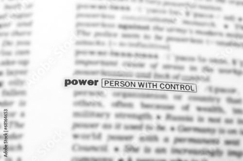 Fototapeta premium Blurred text in dictionary with focus on POWER.