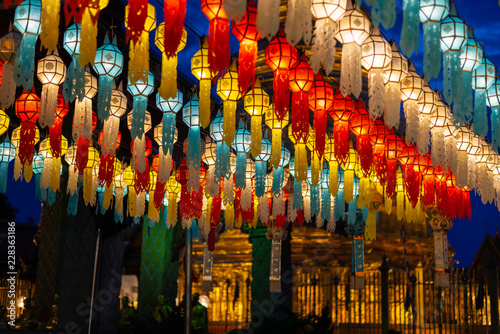 © ttanothai, Fototapeta premium Blurred Thai lanna lantern with light at night .