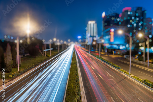 Fototapeta premium blurred traffic light trails on road in Beijing,China.