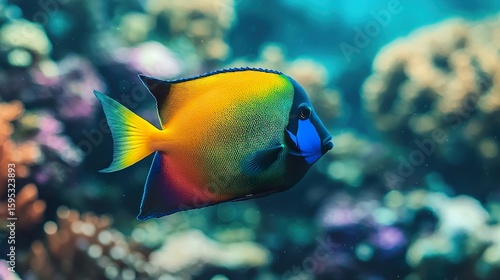 Naklejka premium Blurred vibrant underwater background, exotic fish