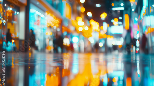 © Ольга Ничипорчук, Fototapeta premium Blurred view of a modern Asia shopping mall interior with bright lights and storefronts, perfect for background use Asia mall background, blurred shopping center, retail interior b