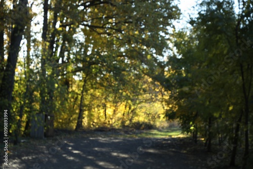 Obraz premium Blurred view of beautiful trees in autumnal park