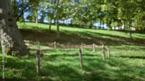 Fototapeta premium Blurred view of villa borghese gardens in rome, showcasing lush greenery,...