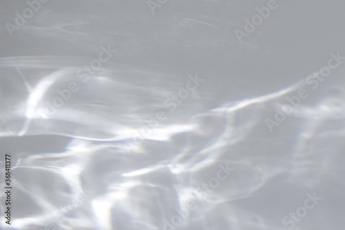 Obraz premium Blurred water texture overlay effect for photo and mockups. Organic drop diagonal shadow and light caustic effect on a white wall. Shadows for natural light effects