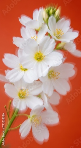 © MrMachyH, Obraz premium Blurred White Flowers on Orange